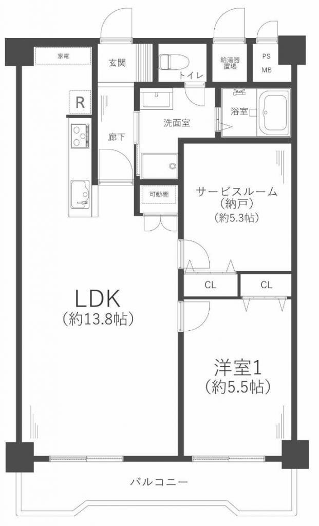 - LDK13.8帖 洋室5.5帖 S5.3帖