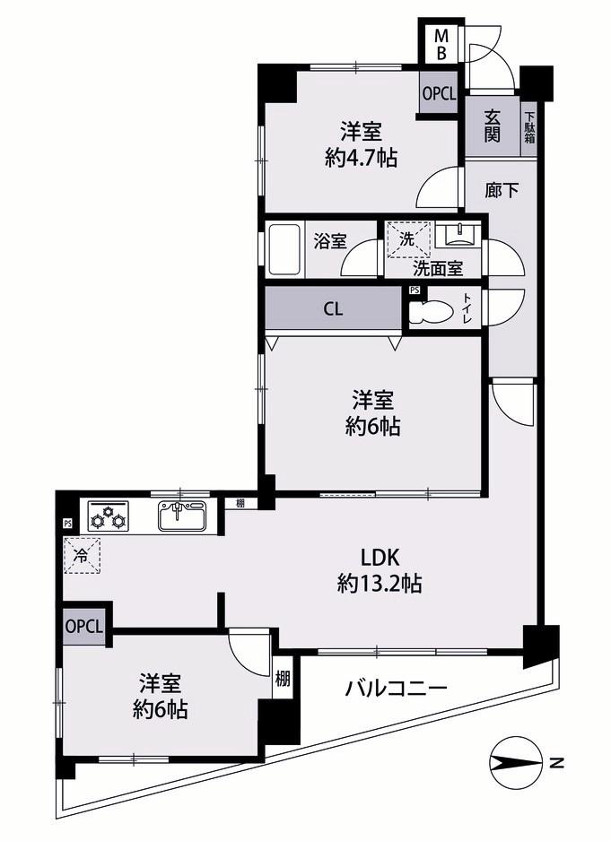 - LDK13.2帖 洋室6帖 洋室6帖 洋室4.7帖