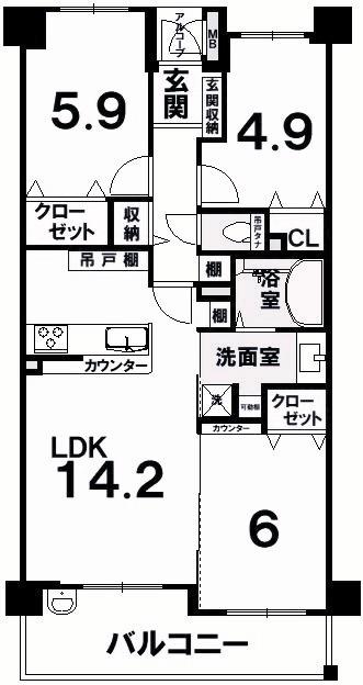 - LDK14.2帖 洋室5.9帖 洋室4.9帖 洋室6帖