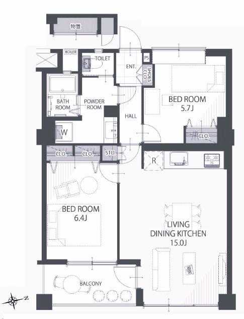 - LDK15帖 洋室5.7帖 洋室6.4帖