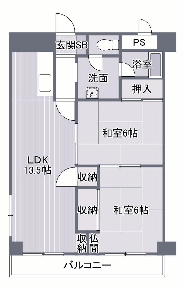 - バス・トイレ別 / 洗濯機置き場 / 給湯 / フローリング / バルコニー / 駐輪場あり / 南向き