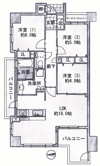 - LDK16帖 洋室6帖 洋室5帖 洋室4.8帖