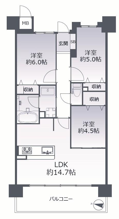 - LDK14.7帖 洋室6帖 洋室5帖 洋室4.5帖