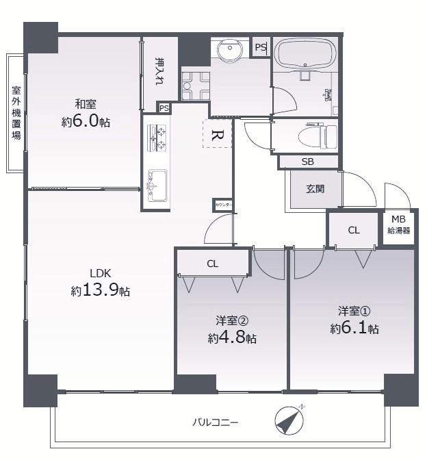 - LDK13.9帖 洋室4.8帖 洋室6.1帖 和室6帖
