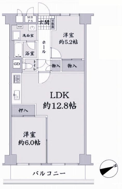 - LDK12.8帖 洋室6帖 洋室5.2帖