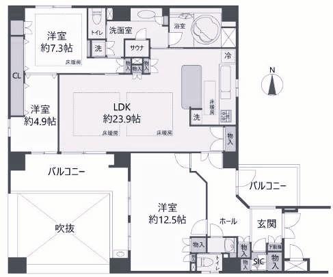 - LDK23.9帖 洋室7.3帖 洋室4.9帖 洋室12.5帖