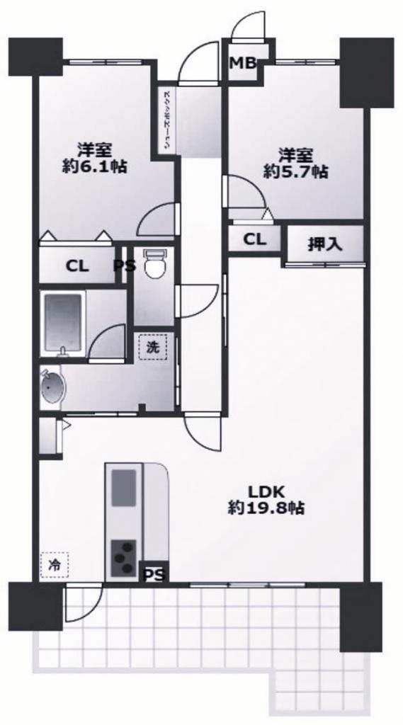 - LDK19.8帖 洋室5.7帖 洋室6.1帖