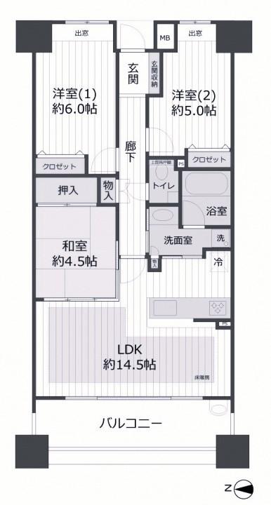 - 洋室6帖 洋室5帖 和室4.5帖 洋室5帖