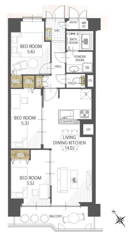 - フローリング / 洗濯機置き場 / 給湯 / システムキッチン / バルコニー/リノベーション