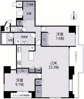 - LDK23.3帖 洋室7.6帖 洋室9.1帖