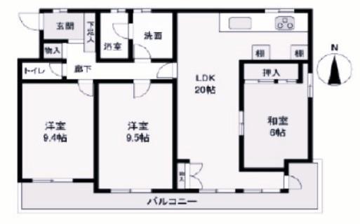 - LDK20帖 洋室9.5帖 洋室9.4帖 和室8帖