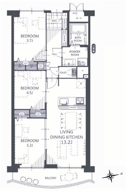 - LDK13.2帖 洋室5.7帖 洋室4.5帖 洋室5.3帖