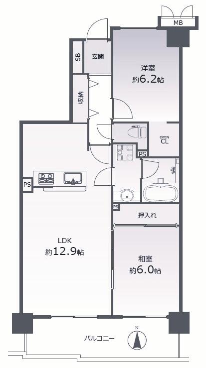 - LDK12.9帖 洋室6.2帖 和室6帖
