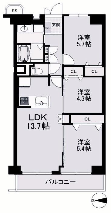 - LDK13.7帖 洋室5.7帖 洋室4.3帖 洋室5.4帖