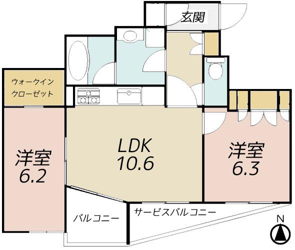- LDK10.6帖 洋室6.2帖 洋室6.3帖