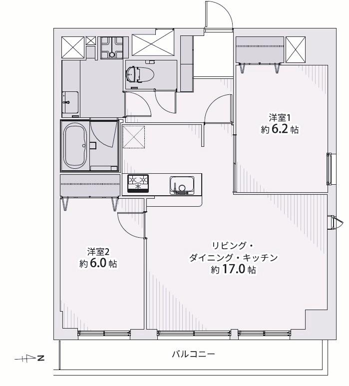 - バス・トイレ別 / 洗濯機置き場 / カウンター付キッチン / 対面式キッチン / システムキッチン / フローリング / バルコニー / オートロック/リノベーション/駅近/田の字地区