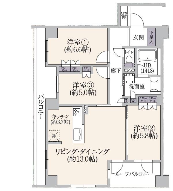 - LD13帖 K3.7帖 洋室6.6帖 洋室5帖 洋室5.8帖