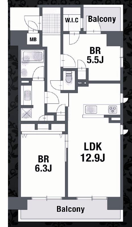 - LDK12.9帖 洋室5.5帖 洋室6.3帖