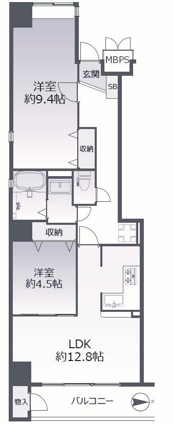 - LDK12.8帖 洋室9.4帖 洋室4.5帖