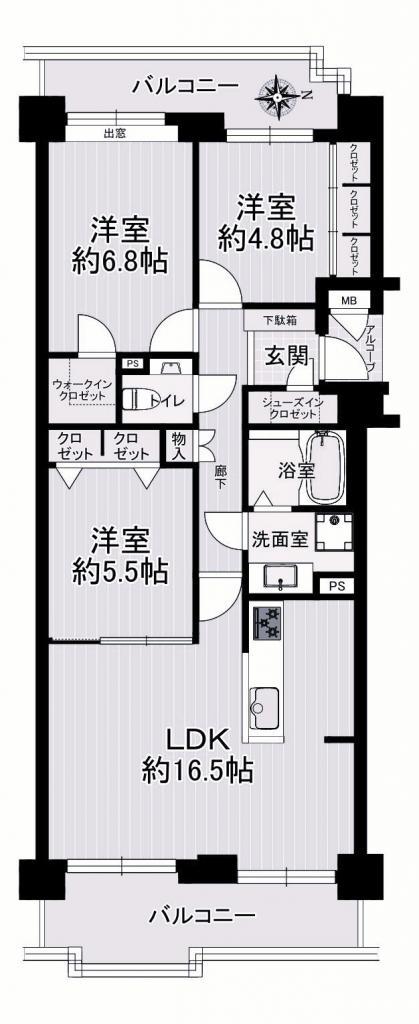 - LDK16.5帖 洋室4.8帖 洋室6.8帖 洋室5.5帖
